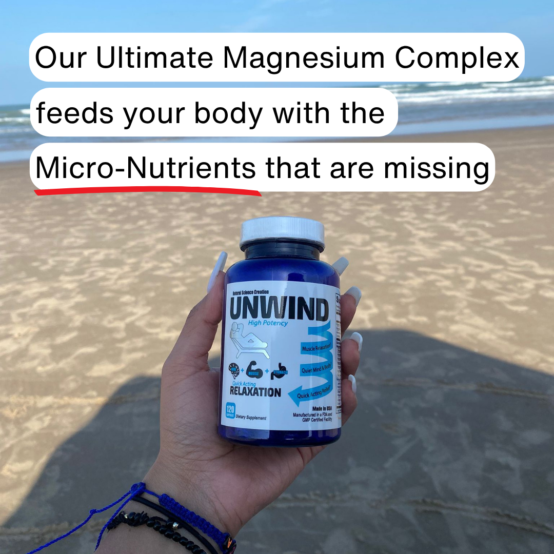 You NEED to feed your body with the Micro-Nutrients that are missing! With all this in mind, we created the ultimate Magnesium Complex with additional MIND/MUSCLE/GUT relaxation support. Enter UNWIND!