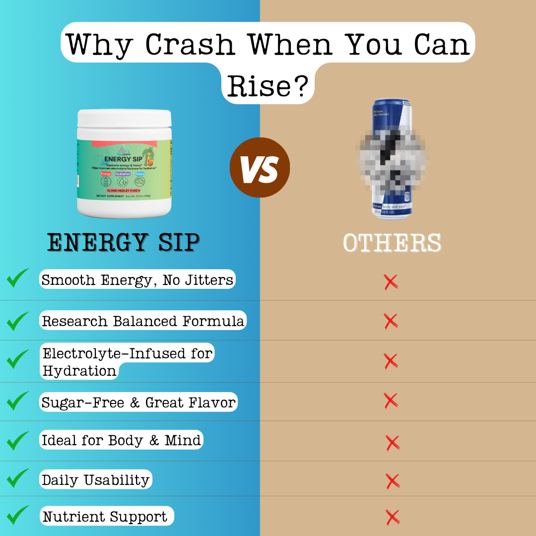 Energy Sip isn’t just an energy powder—it’s your secret weapon for maintaining peak performance throughout the day. With scientifically supported ingredients and a refreshing taste, it’s time to upgrade your energy game.