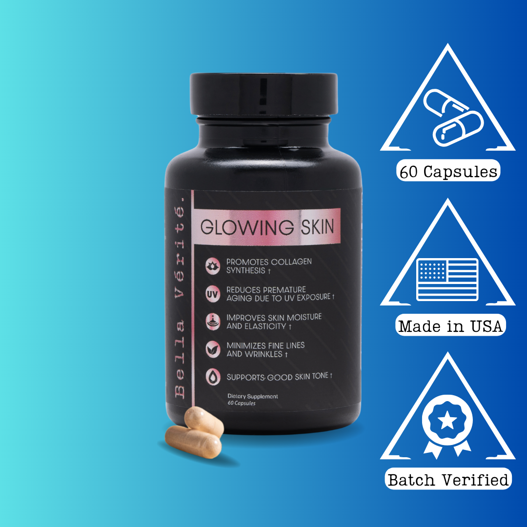 Glowing Skin is your beauty secret in a bottle, formulated to boost skin elasticity and lock in lasting moisture for a radiant complexion. Say goodbye to dullness with ingredients that promote brighter, clearer skin while combating the signs of aging. Fine lines and wrinkles don’t stand a chance as this powerhouse formula works to smooth and rejuvenate. Turn heads with a glow that’s more than skin deep. Glowing Skin brings out your best... from the inside out!